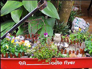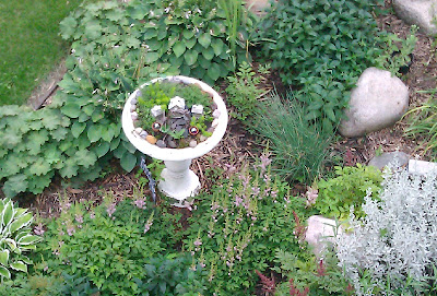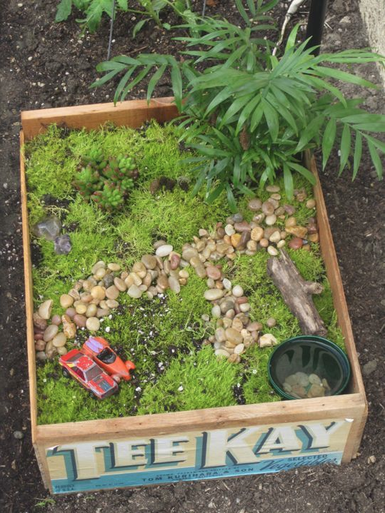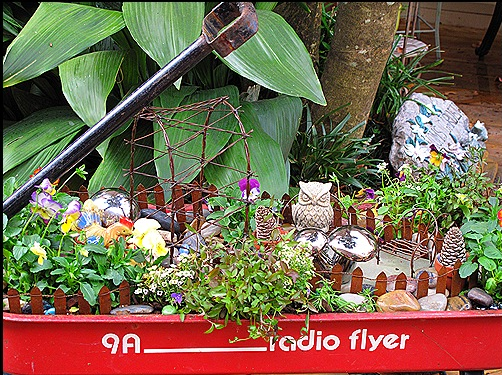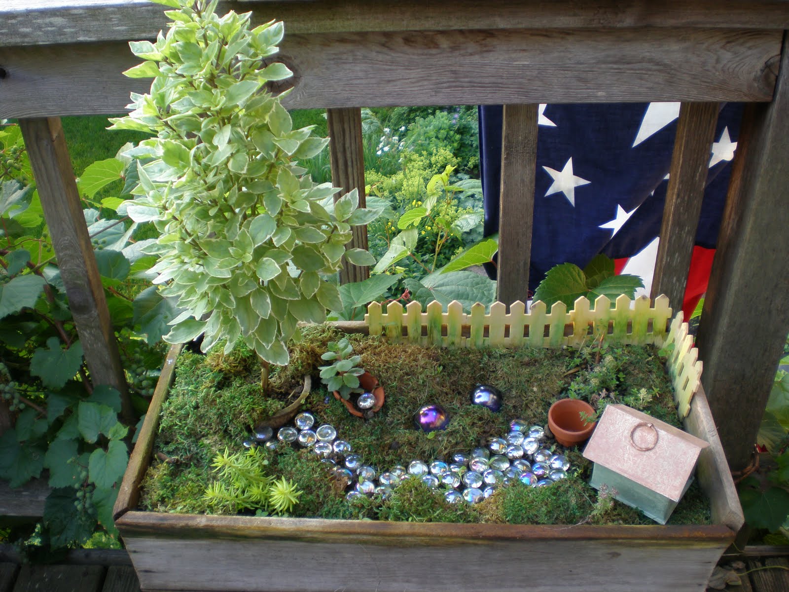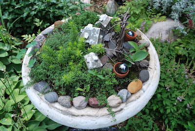 So for around five dollars and a little creative reuse…I have my Fairy Garden—-Priceless!