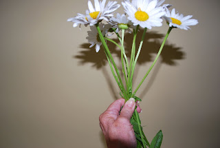Here is how I hand tie bouquets.  I think the flowers last longer this way and the stems look nice in clear vases.