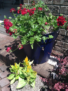 The Geraniums are from the 50% off sale at Holaseks and the Celosia was on sale at Bachmans for $4 .