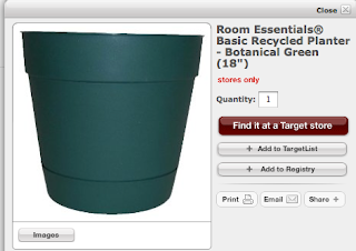 Walking through Target looking for bargains, I came upon two big ugly green planters.  They were marked down to $6.97 from $14.97, so you know that even at full price they were nothing special.  But they were the perfect size, so I bought them.