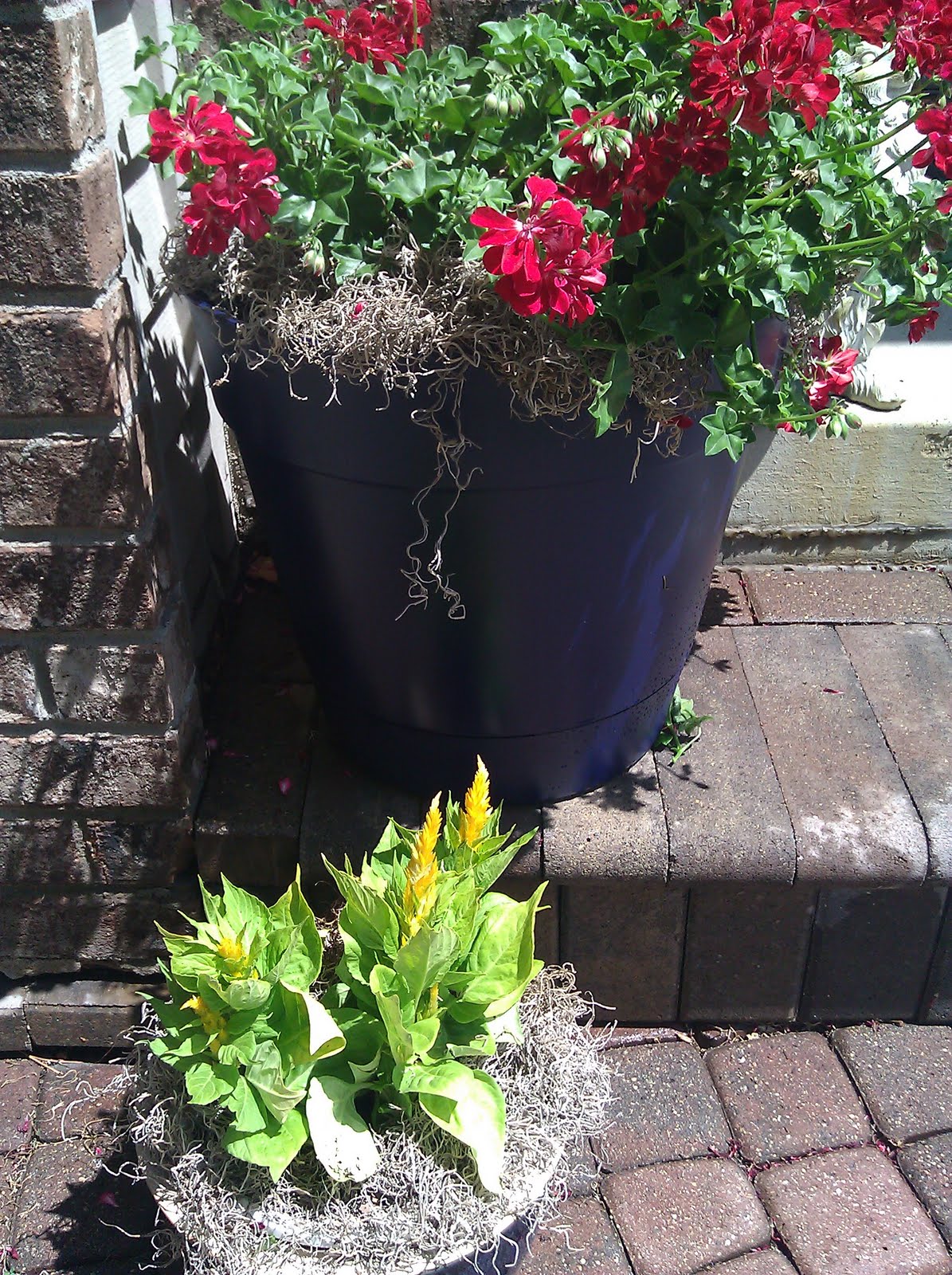 Walking through Target looking for bargains, I came upon two big ugly green planters. They were marked down to $6.97 from $14.97, so you know that even at full price they were nothing special. But they were the perfect size, so I bought them.