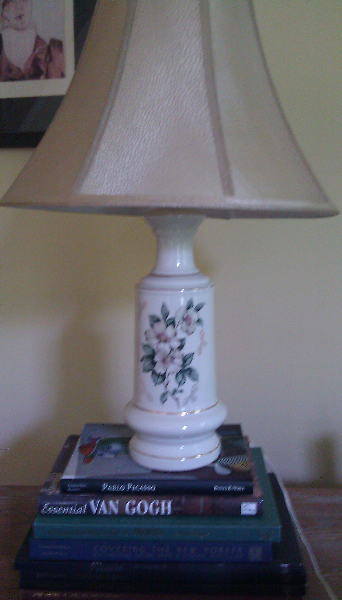 I love the look of the hand painted design on this lamp….the harp on it is just crooked enough to drive my son’s “perfectionist” eye crazy…but it doesn’t bother me!