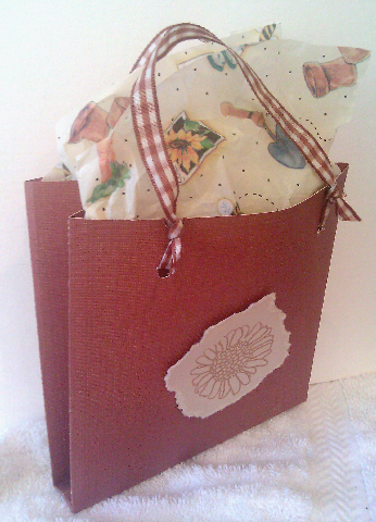 With a few simple folds and some embellishments you will have a inexpensive, handmade alternative to a purchased gift bag.
