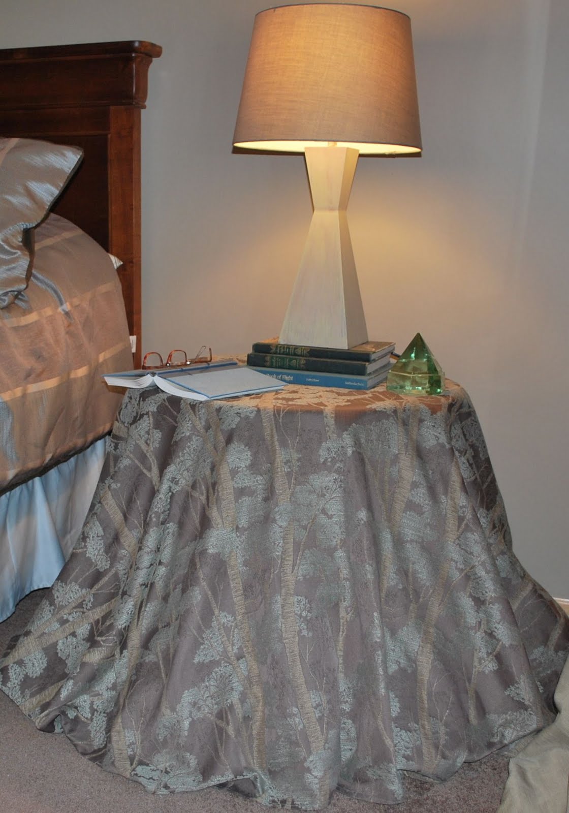 You have probably seen those inexpensive fiberboard or cardboard tables at Target or other discount stores….they aren’t really big enough to for all my bedside junk….this is so much better.