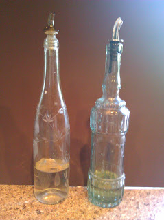 I like to keep a couple of bottles and bar pourers in the gift closet along with some dishtowels and dish cloths!