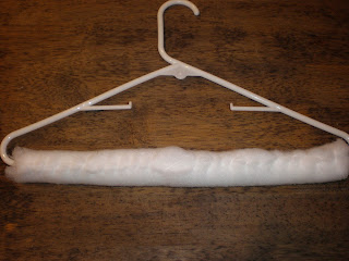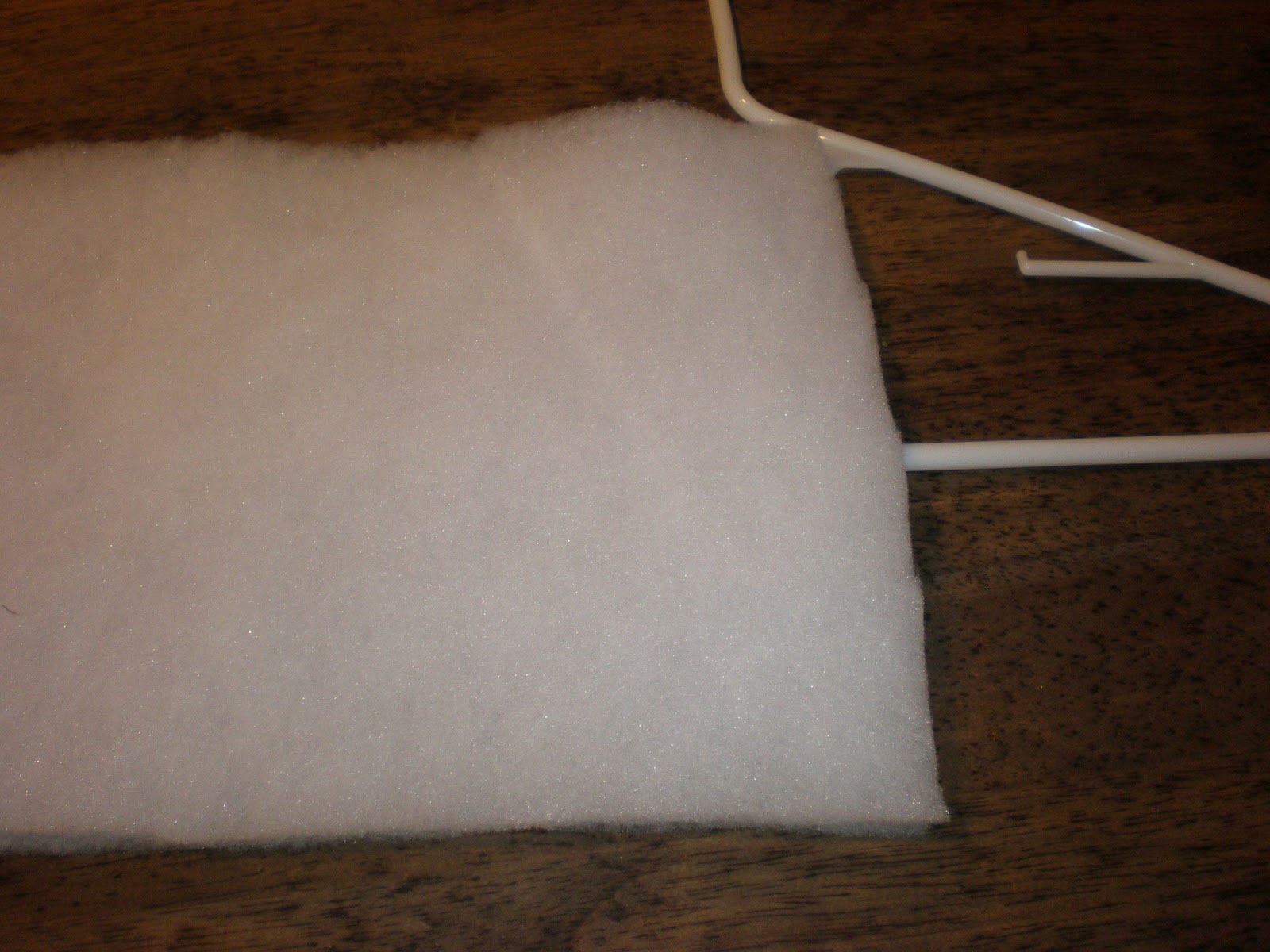 Lay the hanger on the table so that you can eyeball the length of batting and fabric you will cut.