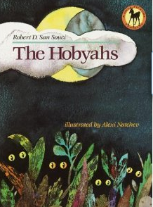 Have you figured out yet that San Souci is one of my favorite authors at this time of year? He does a masterful job of retelling a classic tale of the goblins called Hobyahs. Turpie the dog and his four dog friends try to protect the house, but their noise annoys the old man….so to save themselves they run off to the woods leaving the house unprotected….