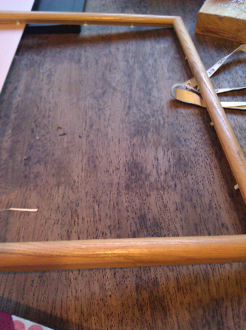 It took some pushing to get it into the frame…because the folded edges of the pockets made the edges pretty thick…but with a bit of stretching and pulling it went in…