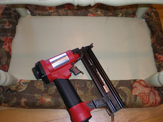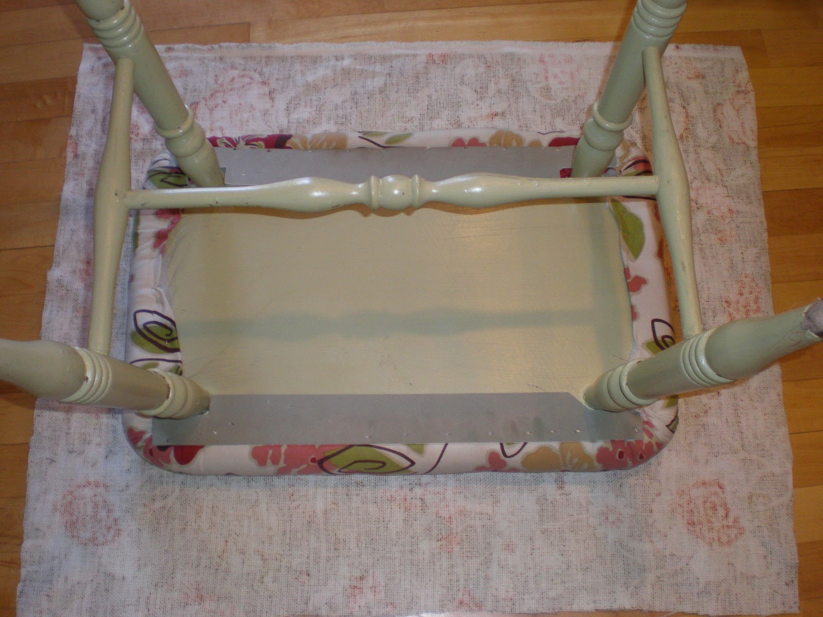 I could see no reason to take the old fabric off the stool….the more padding the better….right?