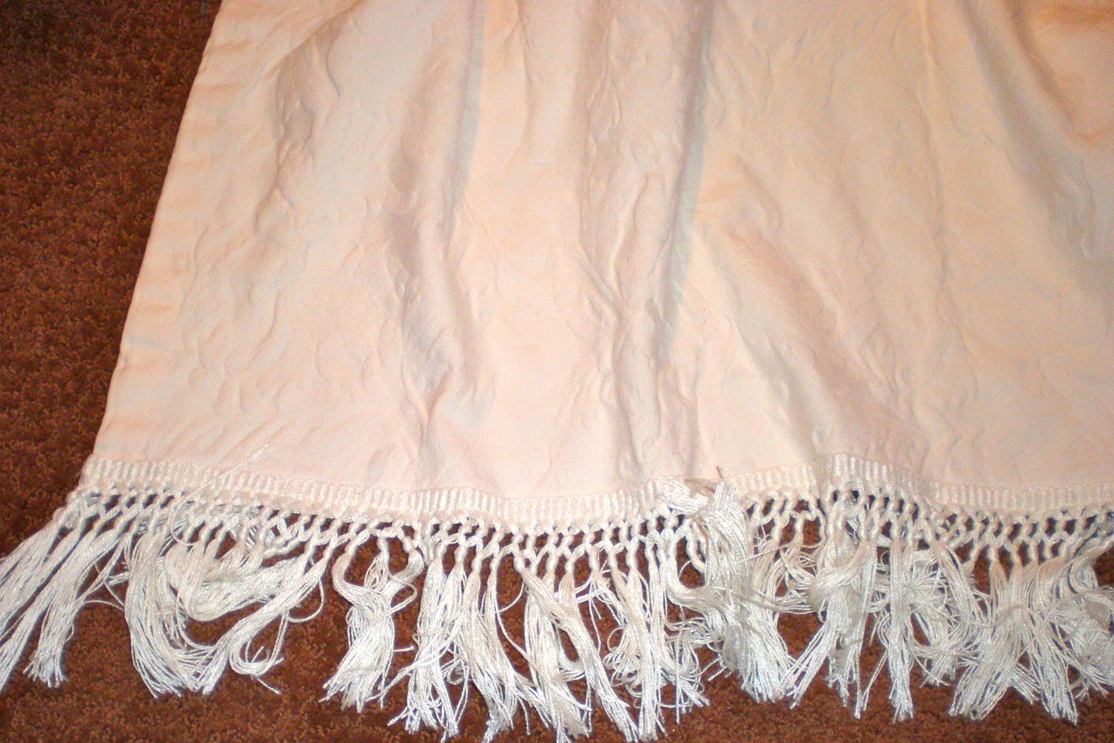 This last one is a made from medium with damask drapery fabric. It too looks nice on both sides with out a lining.  I had some fringe in the scrap box that I added to the top and bottom.  It would be fine without the fringe too!  This is a perfect summer weight throw.