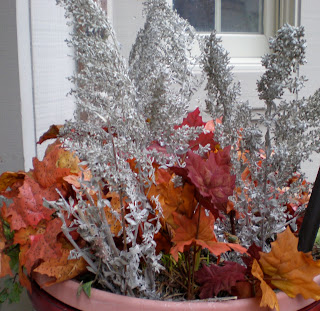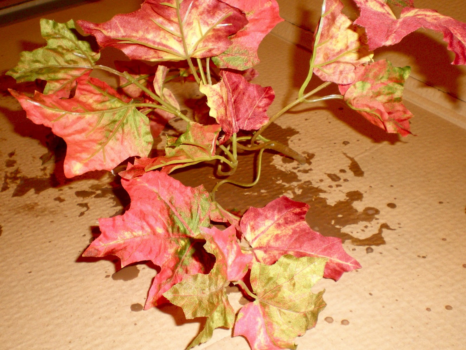 Well I decided to do this paint trick on the ungodly gaudy dollar store leaves….