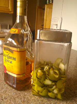 I will strain the lime peels out of the infused Tequila.