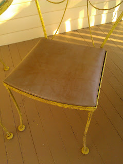 We spent a fun couple of hours recovering the seats on the wrought iron chairs.