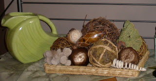 I piled a bunch of natural looking items on a wicker tray….