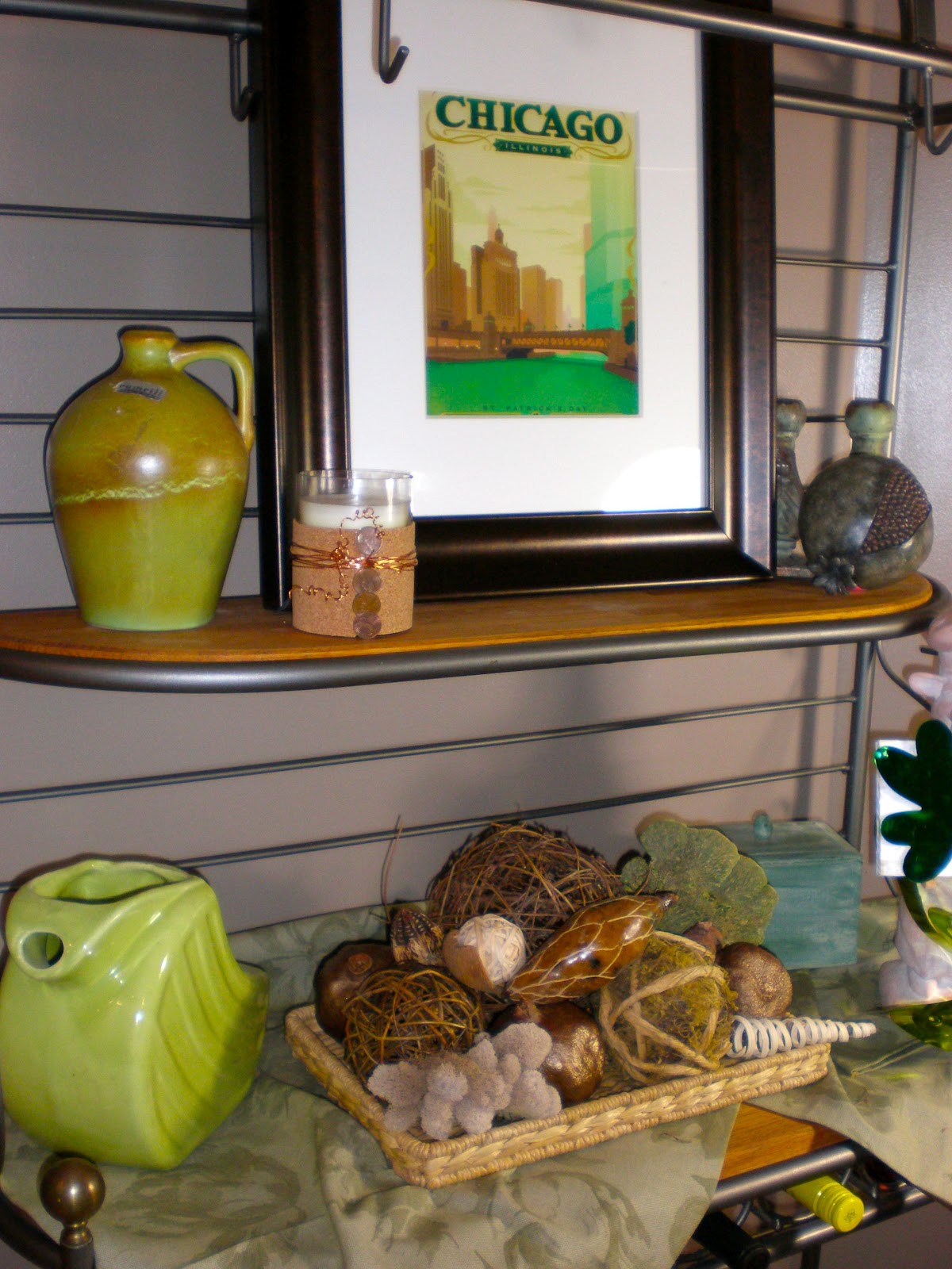 The Baker’s Rack in the kitchen was the obvious spot to display some St. Pat’s Day Decor!