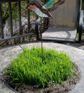 A nice crop of wheat grass growing on the deck.