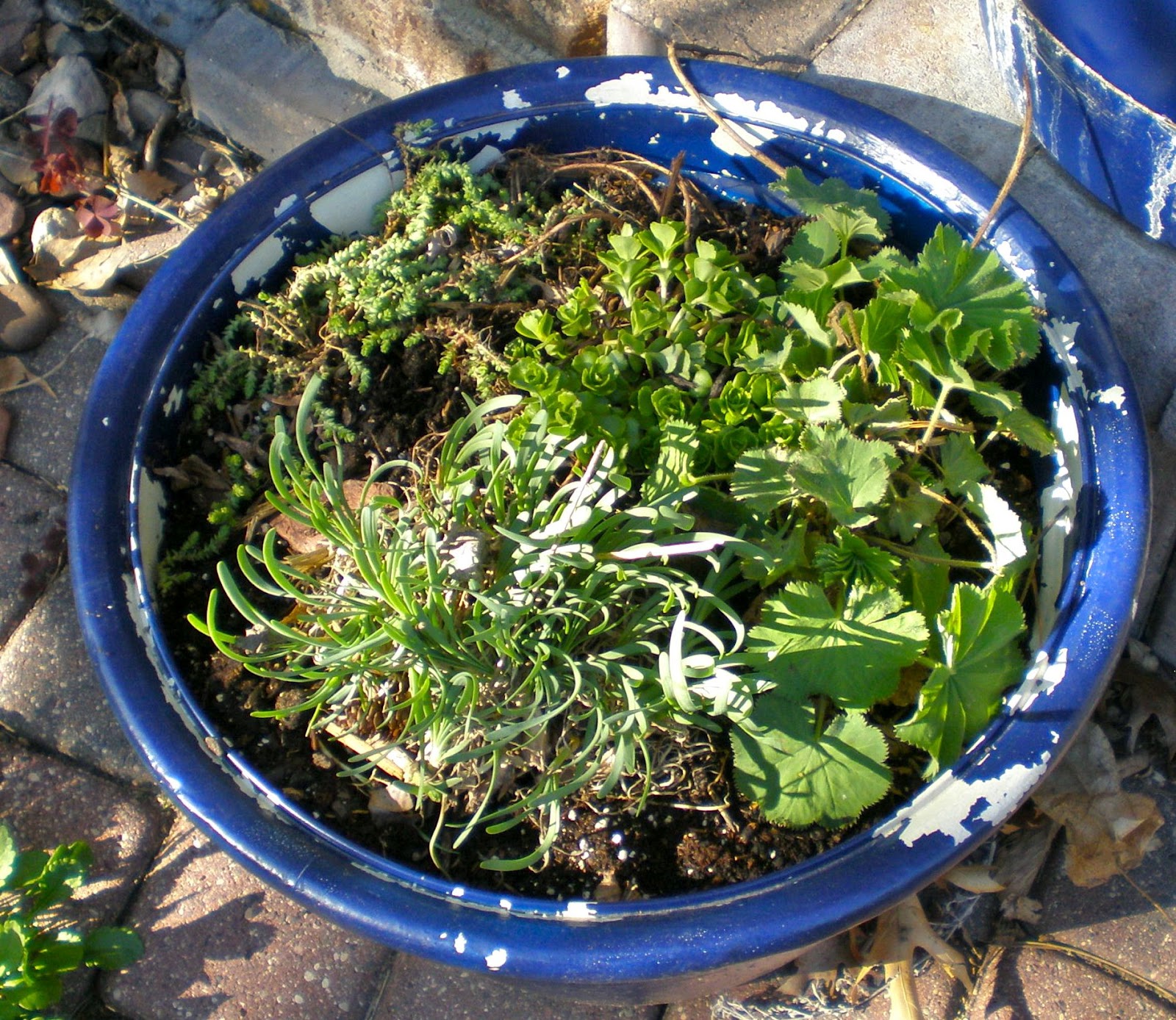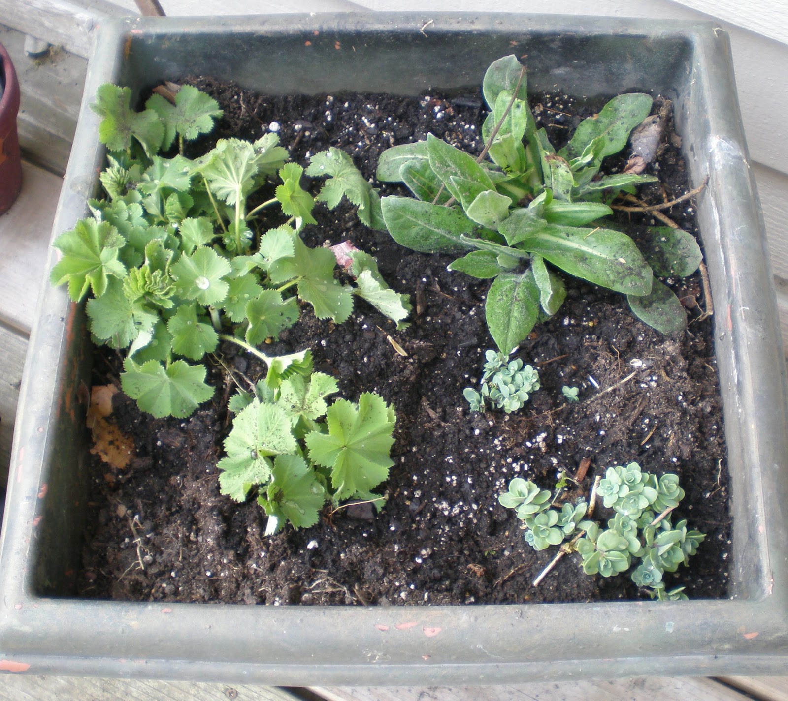 I wandered around the yard and dug up some of those little volunteers….and just plopped them in the planters!