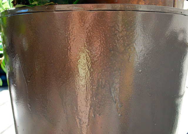 I always “lust” after those fancy ceramic pots at the upscale garden stores…..so I tried to mimic the look of the glaze by letting the spray paint drip and run…..I think I nailed it!!!