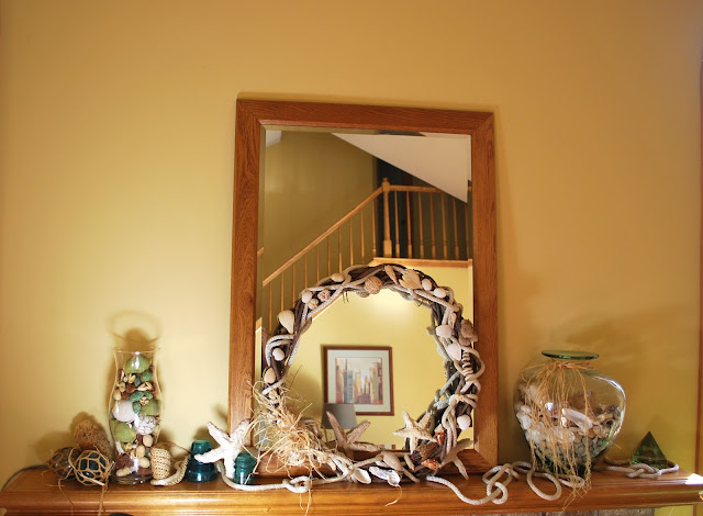 I stuck the wreath in front of the mirror…added some other nautical themed items….AND….