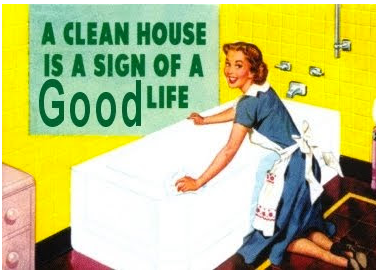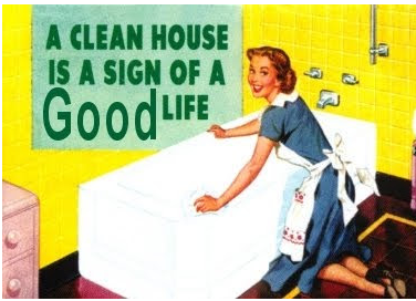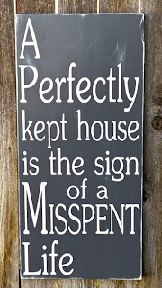 I like your quote. But I like my "A clean house is a sign of a misspent life." fridge magnet better than the 50s looking sparkling clean tub & housewife sign, lol.