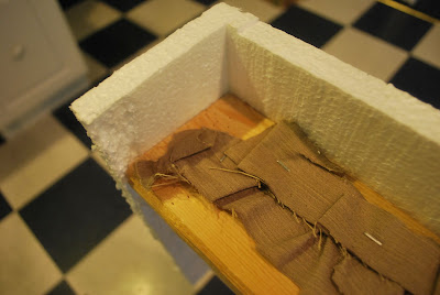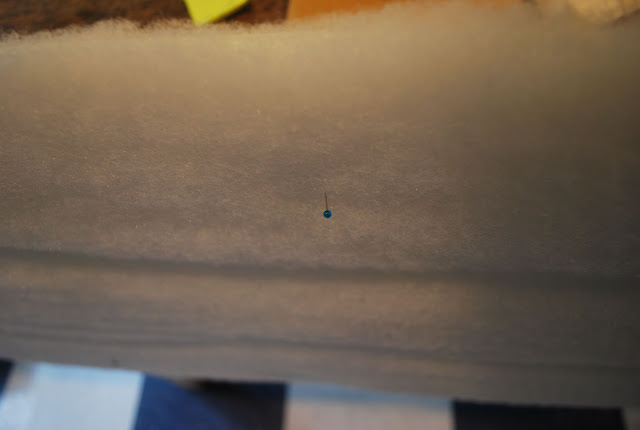 I used quilt batting to cover the whole thing. I just stuck straight pins in to attach this….