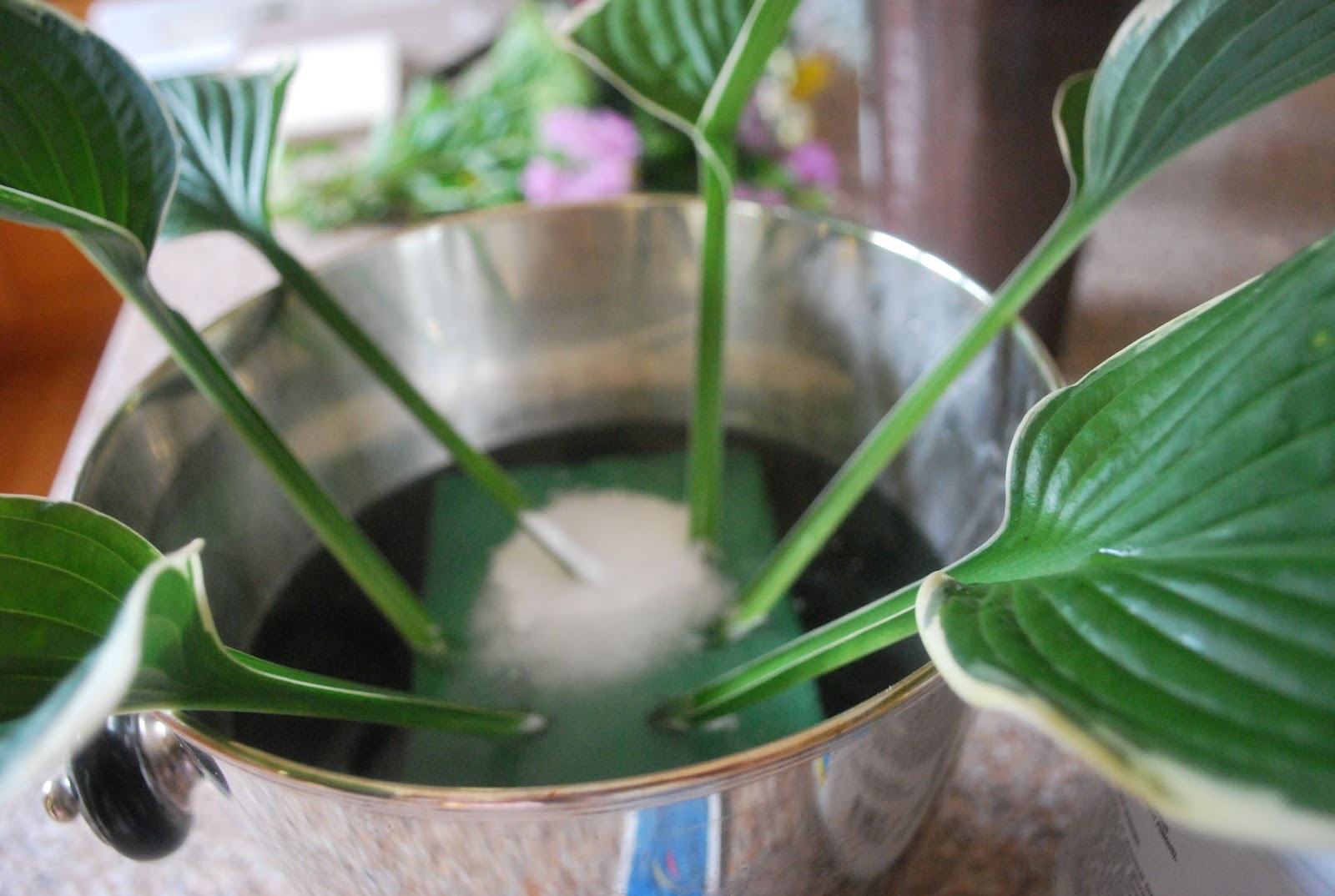 The Hosta leaves form a “frame” around the base of the container…
