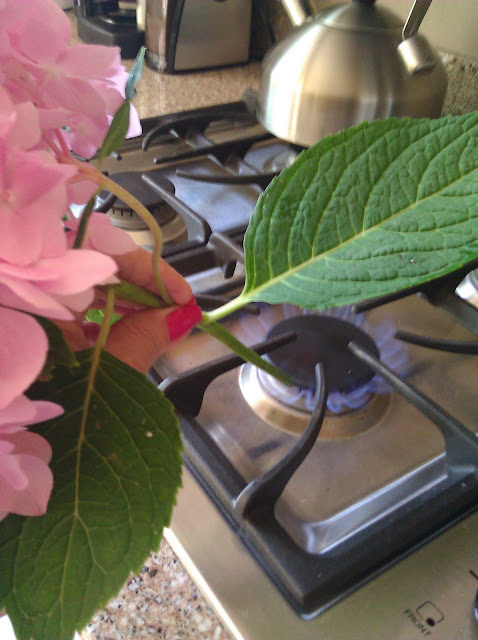 After doing my research, I discovered this process for conditioning Hydrangeas for arrangements.