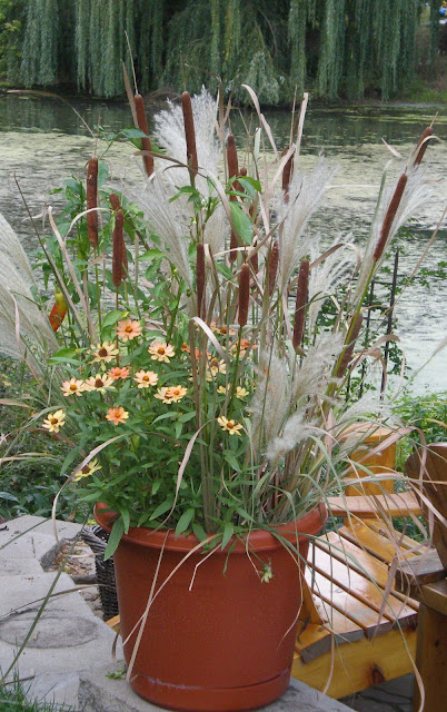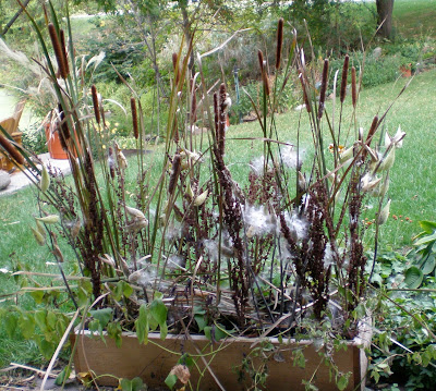 Can you believe that I saw a teensy bunch of 4 cattails in the floral display at the grocery store for $3.99!
