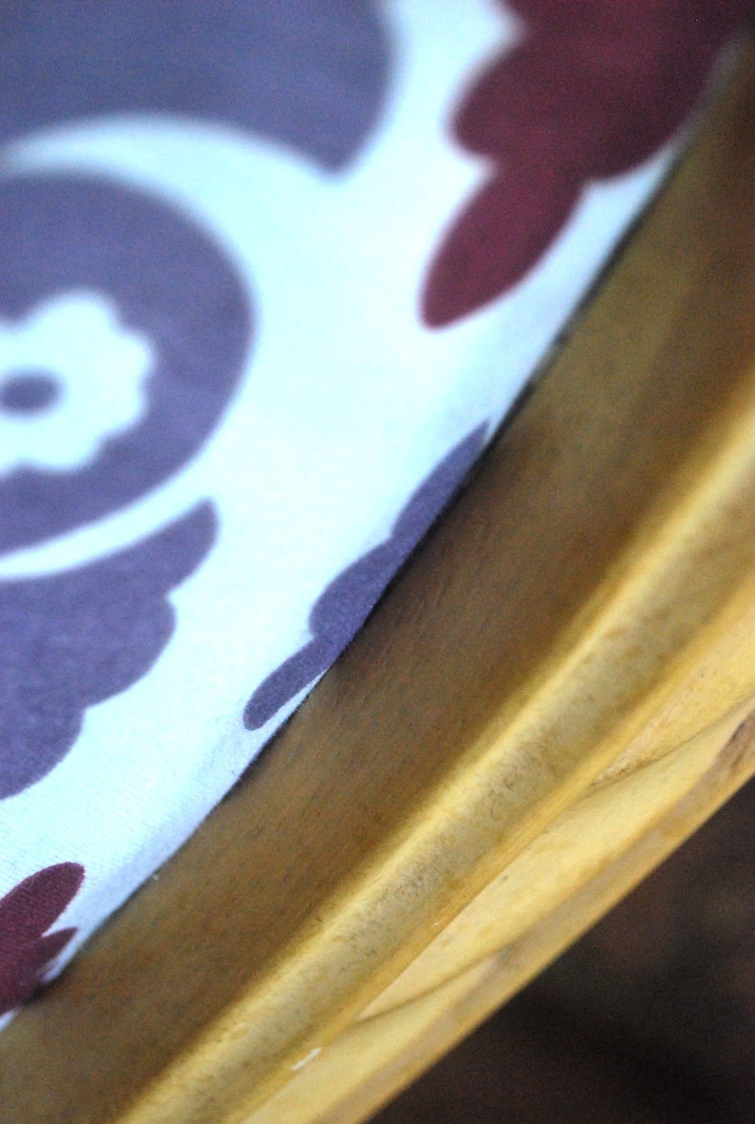 and around the front edge of the seat back. It was easy to nail the tacks in and avoid all those staples!! The nails hold the fabric nice and tight!