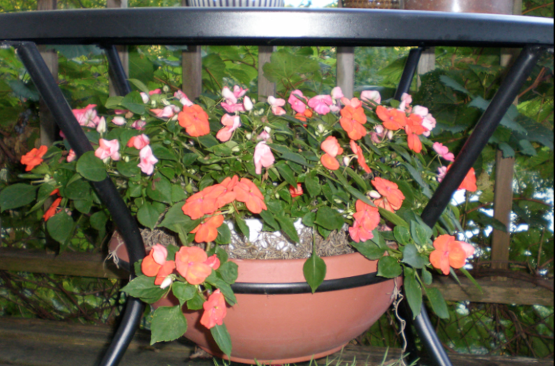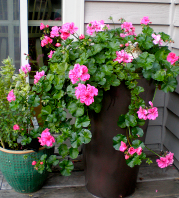 Lots of fertilizer, dead heading and watering has kept the deck plantings looking pretty good so far…..