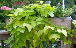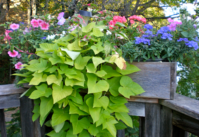 the Sweet Potato vine is kind of taking over…..maybe next year I will find something different for trailing……