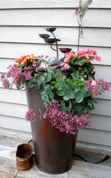 The fall color of this Sedum spilling out of the planter fountain is really pretty….