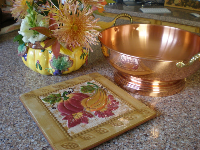 The copper bowl from “Bonne Volonté” was perfect in size and color….I put a plastic bowl inside so the copper wouldn’t get “yucky” from the water…