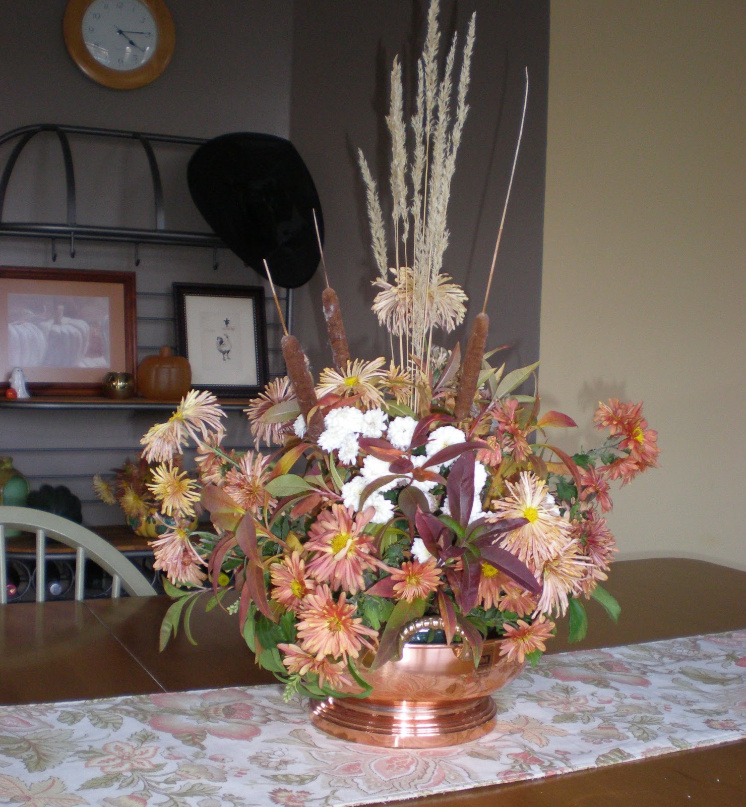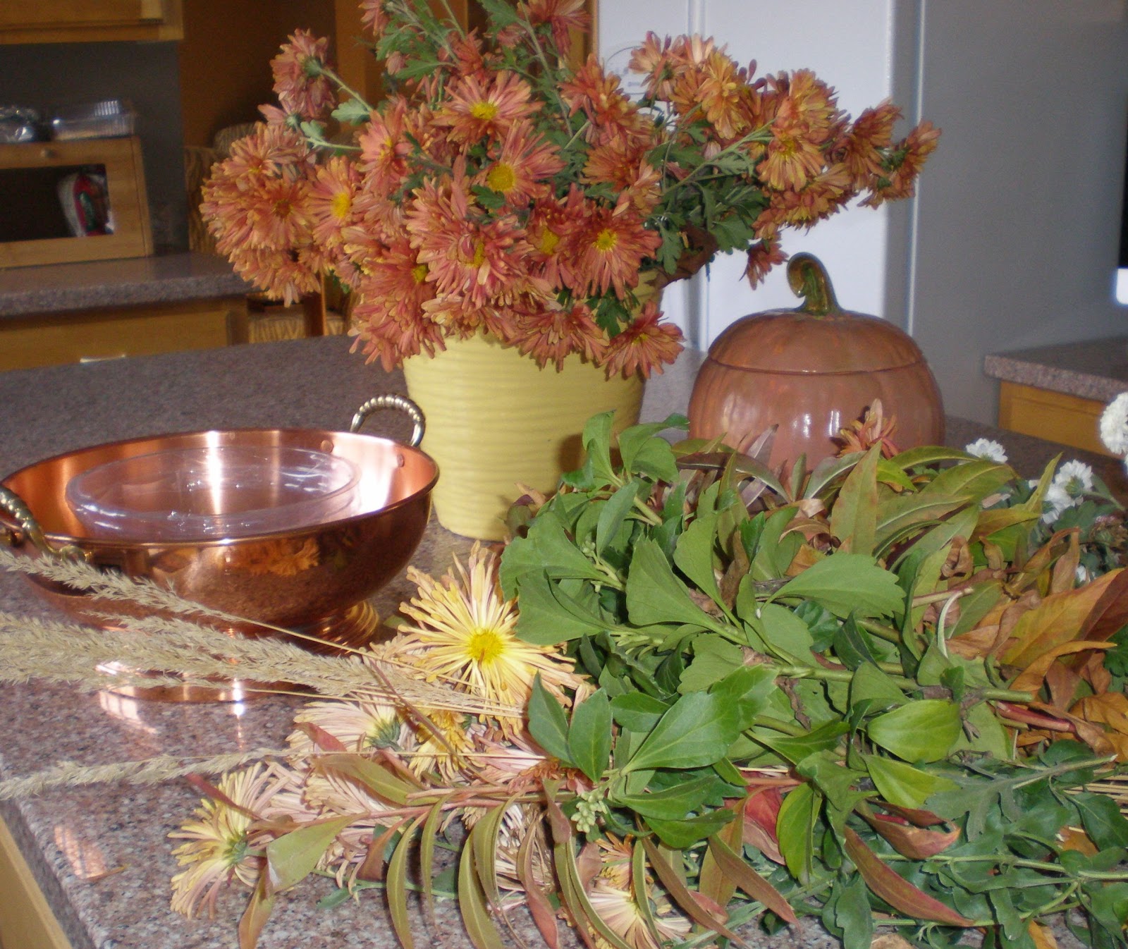 I went walking through the yard to gather all kinds of great looking fall foliage and the last of the mums….