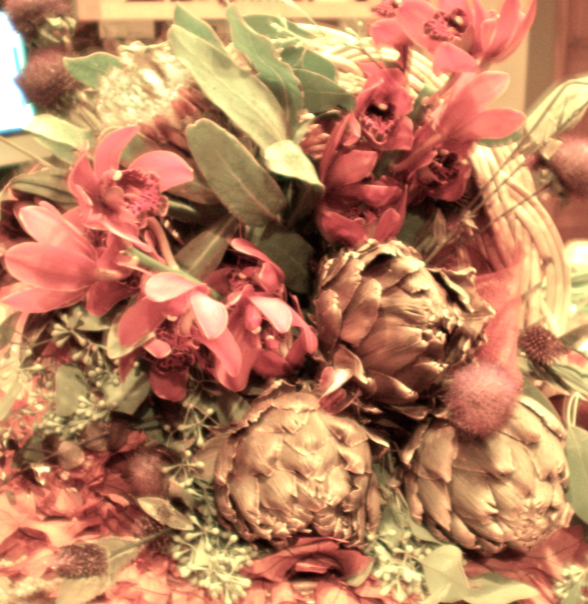 The Sweetwater Daughter brought her treasures….fresh greens, some artichokes she dried in the oven, some orchids and dried florals and leaves.