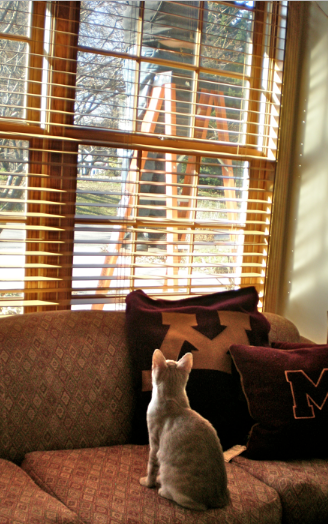 This is a photo of our old cat Dave….relaxing on the couch!! But you get the idea of the fabric!