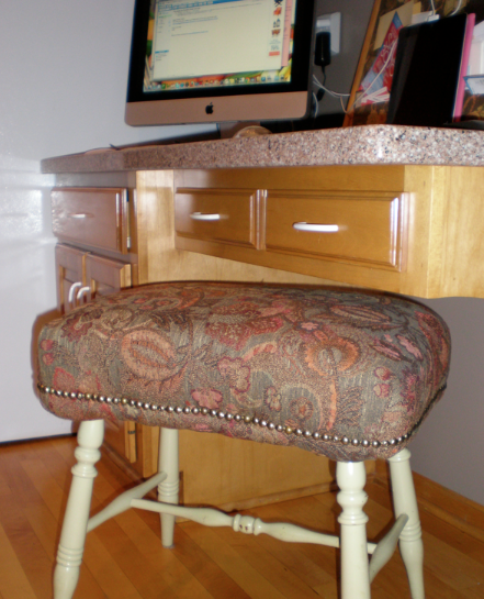 But I LIKE my stool….it is cute….it slides neatly under the desk….