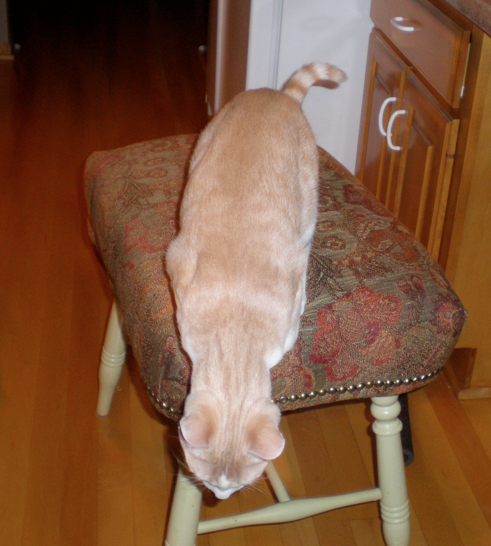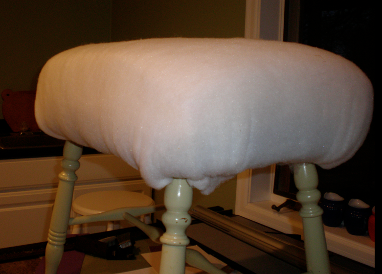 I had a piece of foam that was just the right size to add four inches of height to my stool! With just a little trimming it was an exact fit!