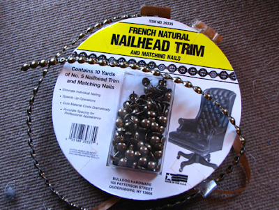 Then I remembered that I had some leftover nailhead trim from the “leather look” side table project!