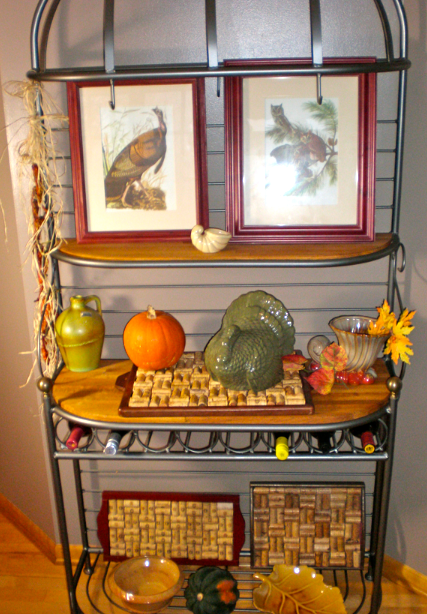 The obvious “Halloween” decor is put away….but that leaves a lot of good stuff that still looks appropriate for moving on to Thanksgiving!