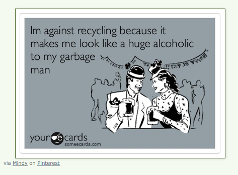 Which reminds me of a funny thing….a while back, Mr. S. told me he read in the paper that when the county did an analysis of the success of recycling initiatives, they discovered that our little area “won”….in terms of pounds per resident…..