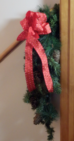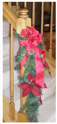 Since I really liked the family room stair treatment last year….I did almost the same thing again this year.