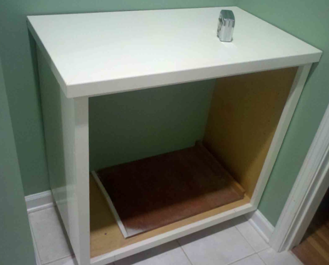 He came up with this amazing DYI project he did to totally hide the litterbox!