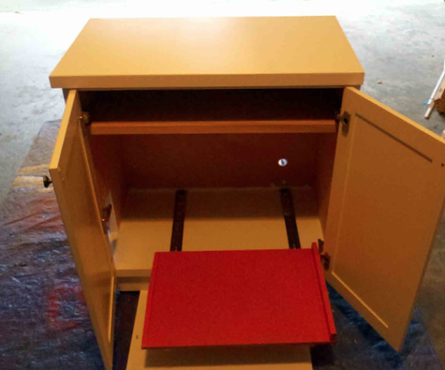The next step was to install a set of drawer slides in the bottom of the cabinet to allow for easy access to the box for cleaning.