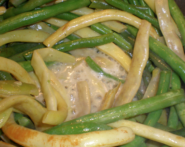 When the butter is completely coating all of the beans…..add a bit of salt and pepper….