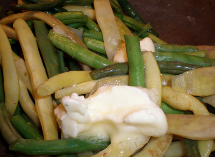 Sometimes we are lucky enough to find a mix of green, yellow and purple beans….it doesn’t much matter as long as they are crisp and fresh to start with.