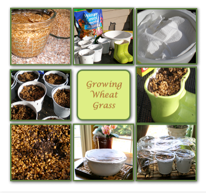 The wheat grass got planted in 8 pots of a similar color….I used greens and golds!