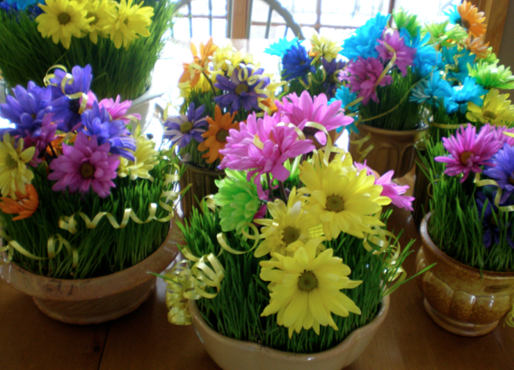 Amazingly cheap centerpieces, even if you had to buy the pots it would still be inexpensive. Very nice!