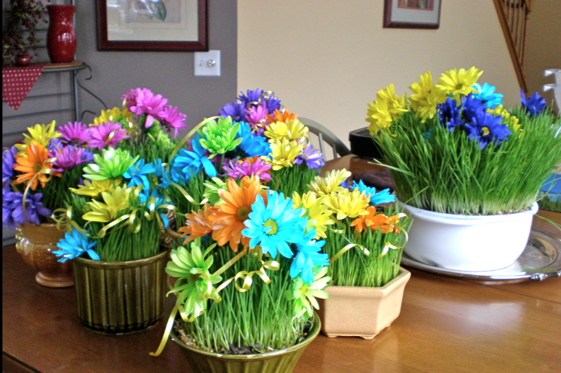 The grass needs about a week in a sunny window to grow to the height of 4 inches.