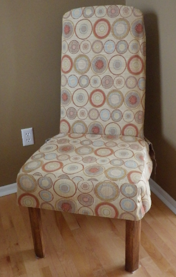 The chair looks wonderful in the new fabric, the circles in those colors, a little geometric is all the rage and yours is a great choice, I am sure your gonna get a lot of use out of these and they look fab with your new wall color…